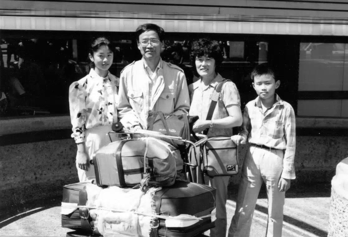 1989年8月6日,初抵温哥华机场时,父亲的朋友为我们一家人拍摄的留影。