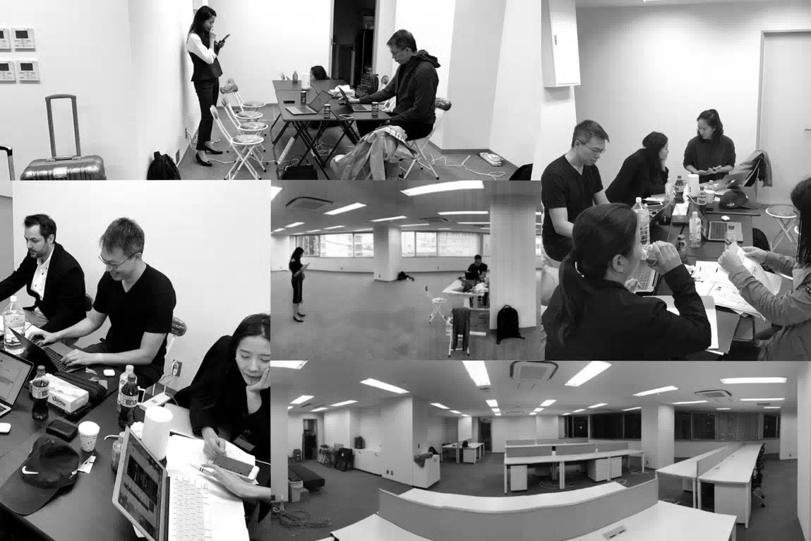 2017年9月,团队成员日夜在东京办公室忙碌。办公环境也从最初的折叠桌椅,逐步完善。