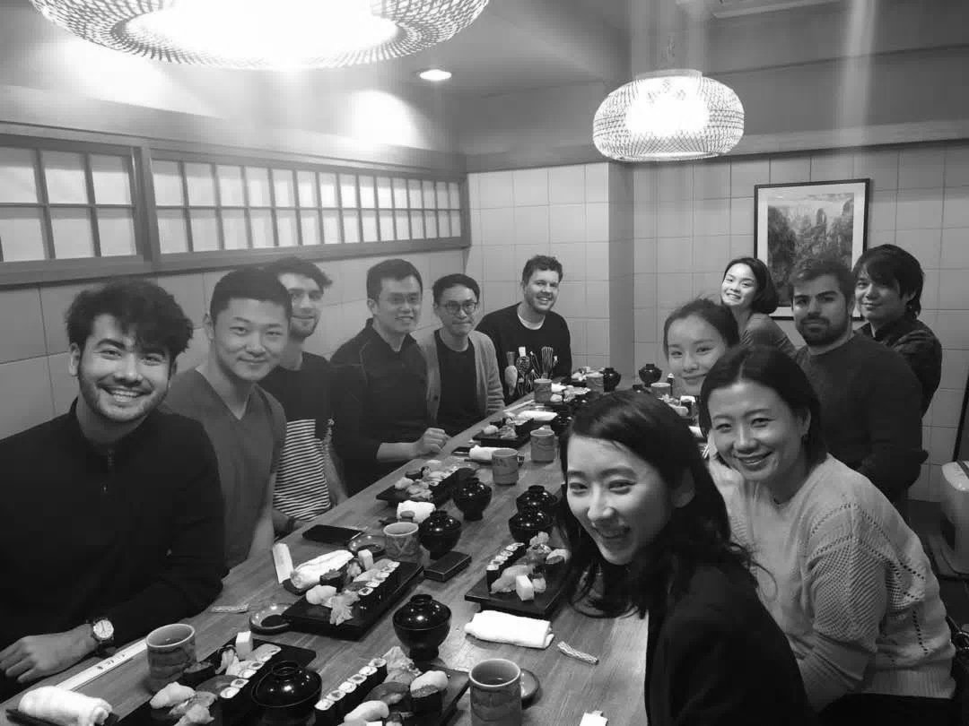 2017年底,在东京的工作日,团队一同外出晚餐。