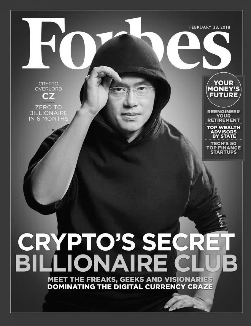 2018年2月7日。《富比士》封面:《从零到亿万资产的加密富豪:币安创办人》。